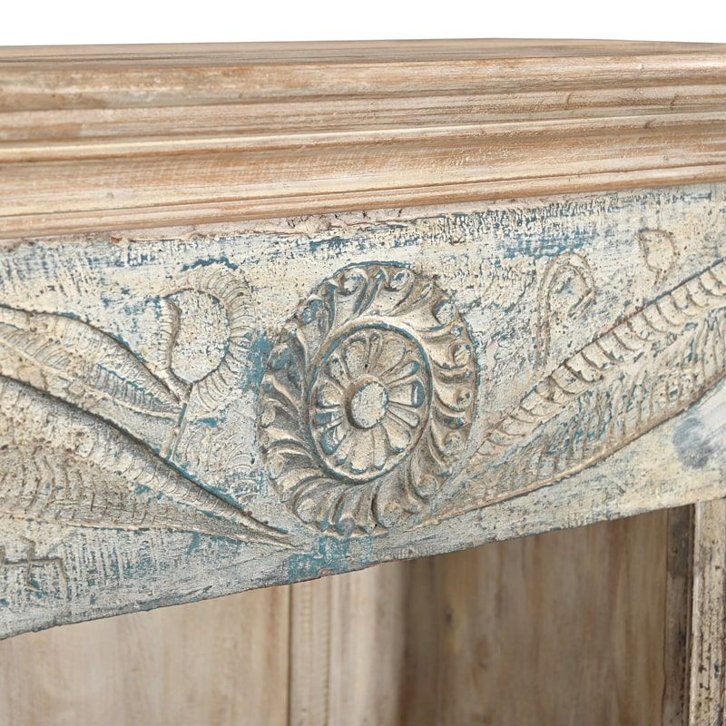 Chaque détail reflète le savoir-faire traditionnel : les motifs sculptés à la main et la finition cirée mettent en valeur la texture naturelle du bois, tout en conservant l’histoire et le charme de la pièce originale. Pièce unique de la collection INDIA, cette petite bibliothèque combine authenticité, durabilité et élégance, transformant n’importe quel coin de votre maison en un espace chaleureux et raffiné.