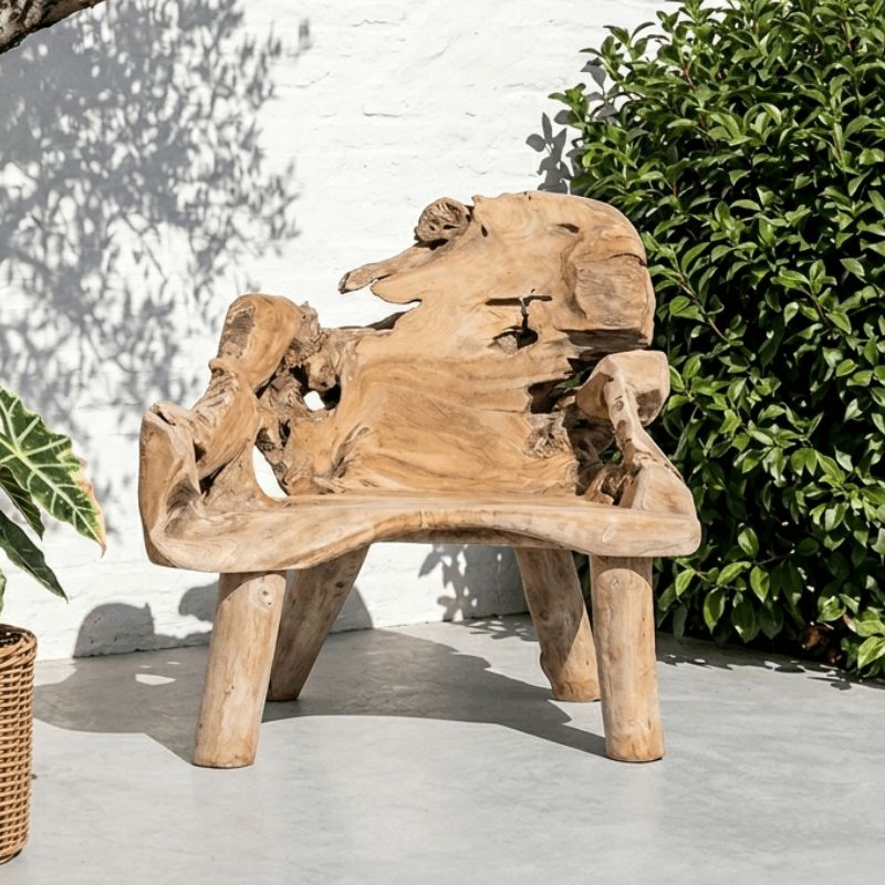 Fauteuil racine de teck RACINE ~70cm 4 pieds